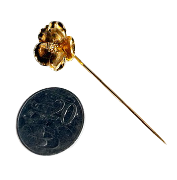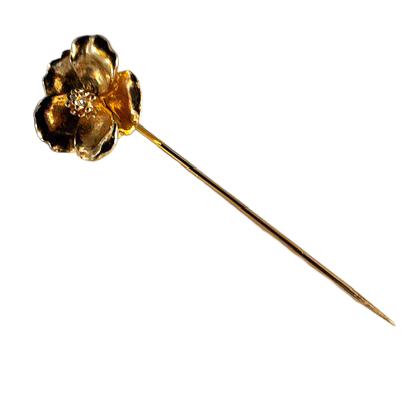 Fleur Dorée is a sweet vintage gold-tone hat pin featuring a softly sculpted floral motif and slender pin shaft.