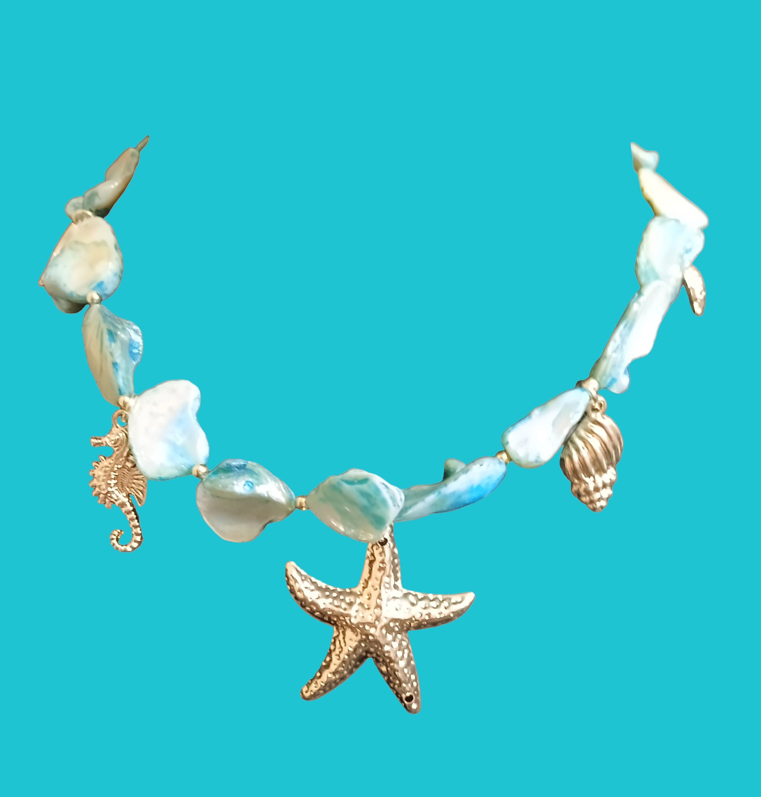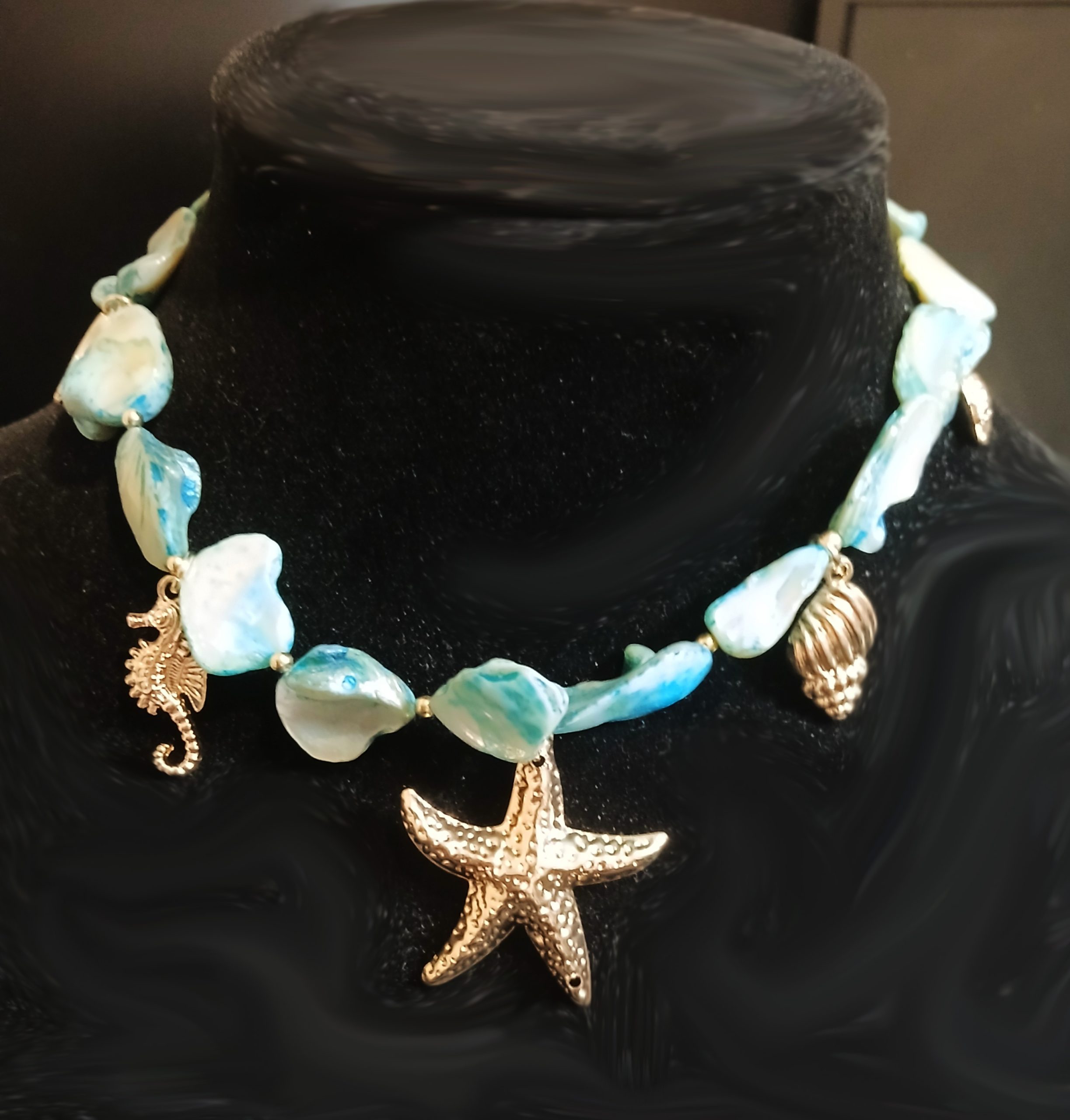Blue Lagoon is a lovely summery nautical themed necklace in aqua tones.