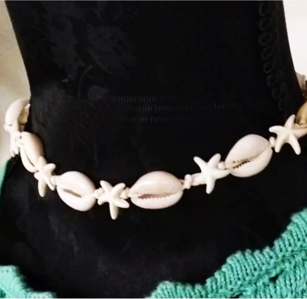 The Cowries and Starfish is an adjustable choker and bracelet set of stunning white natural cowrie shells, with lovely little man-made starfish in between each shell, exuding a touch of nature and elegance. One size fits all with easy adjustment. The white shell material adds a touch of simplicity and charm to any outfit, making it a perfect accessory for those who appreciate the beauty of nature in their jewellery collection. This combo is part of our Beachie range of jewellery and accessories, ready for the summer season and a definite winner for Christmas.