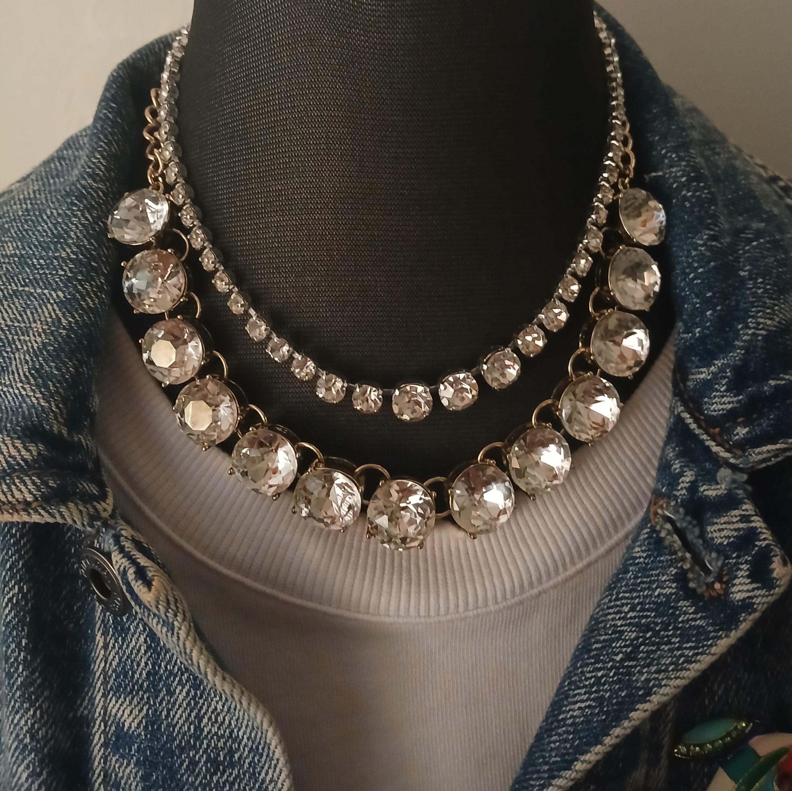 Big Rhinestones & Little Diamontes Set is just what the fashionista princess ordered for this coming season.Vintage necklaces of big crystals and diamontes combined to dazzle