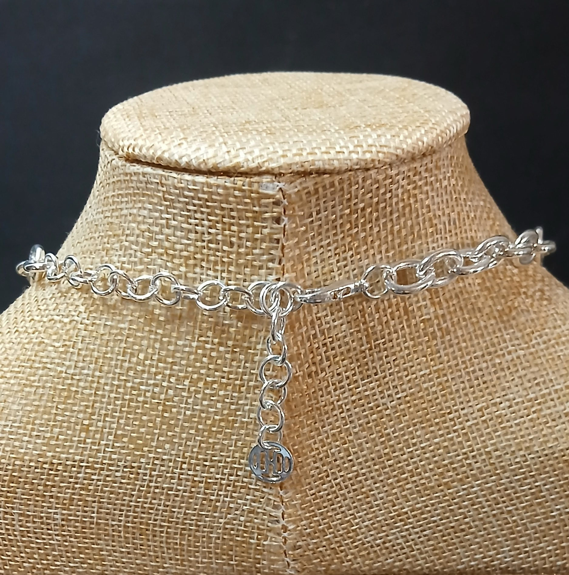 Crystal Statement is a vintage style necklace of huge faux crystals and silver tone chain links.