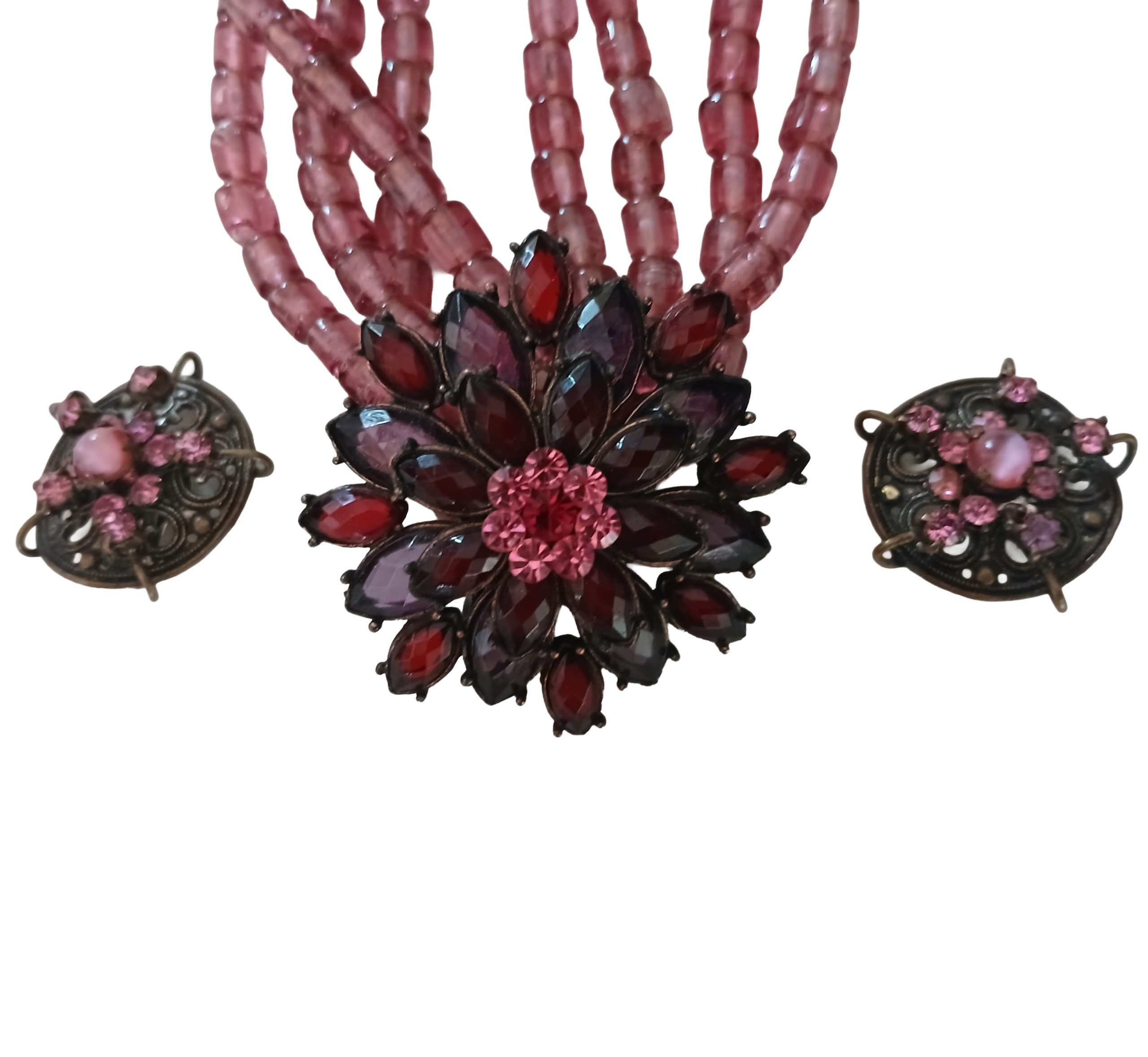 Ruby Trio Combo is a delectable combination of vintage multi-strand necklace, earrings and brooch.