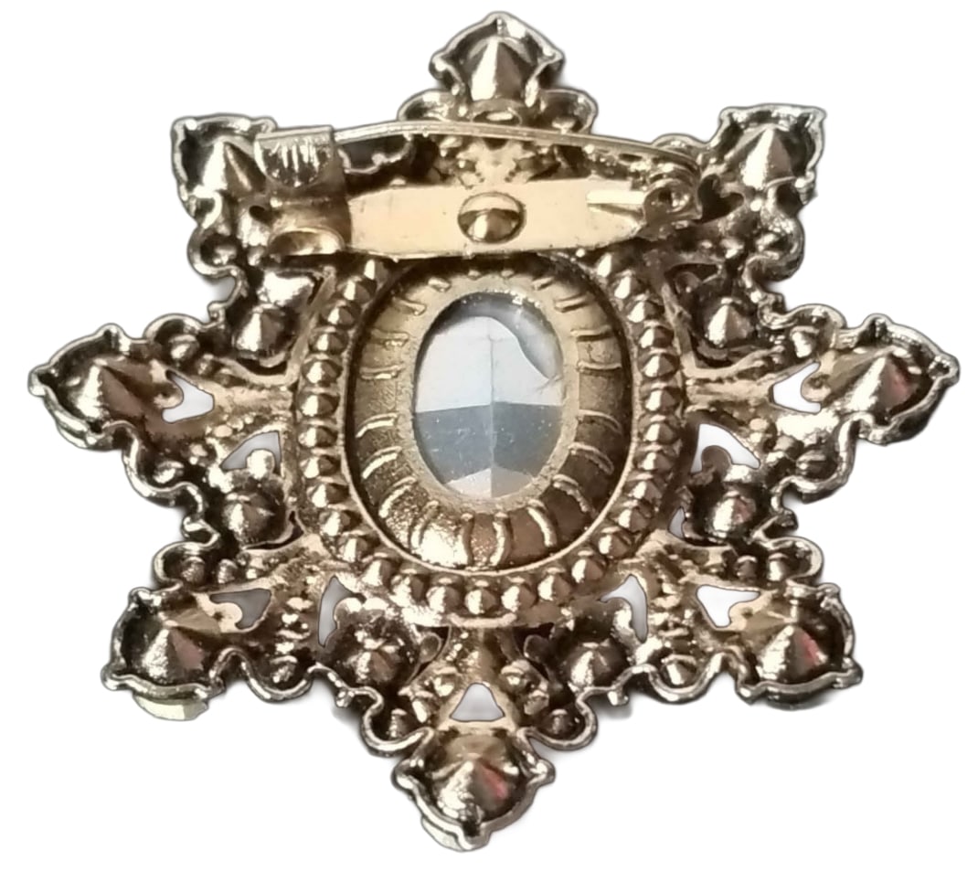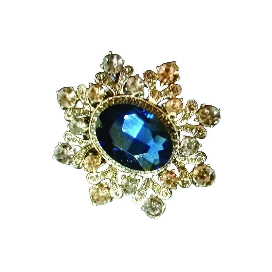 Vintage gold tone star style brooch with a deep blue centre rhinestone