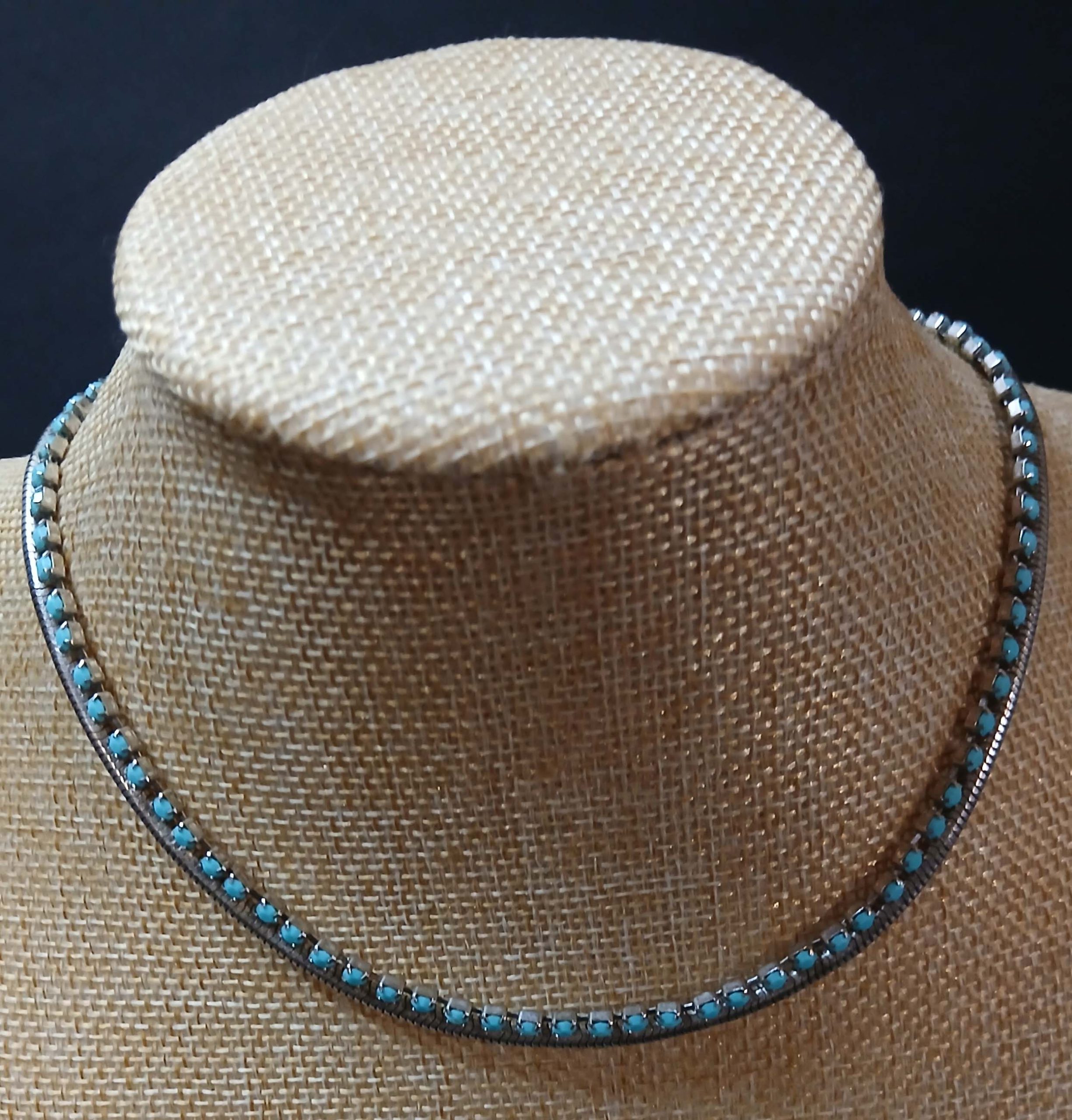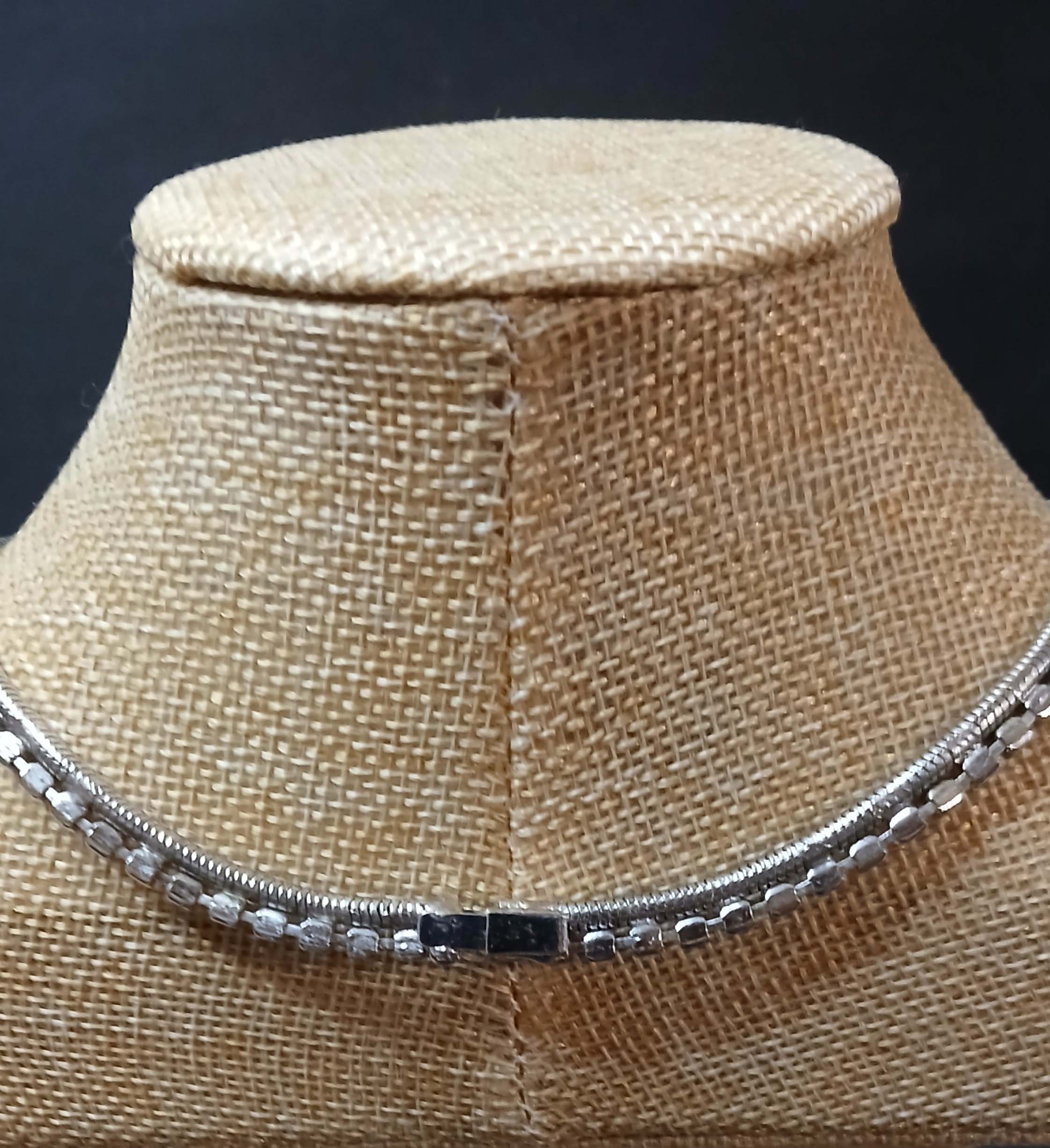 Mia is a Vintage silver tone and blue rhinestone collar necklace